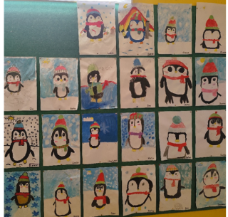 November 2025 - This month in 3rd and 4th class we have been reading our novel The Butterfly Lion. We also read about the Titanic. In Maths we have been looking at 3D shapes and what 2D shapes are in 3D shapes. We have been looking at Italy and we drew Italian landmarks and wrote about famous people, Italian food and towns and cities. In Art we drew Mona Lisa. We also made cute, chubby penguins and gingerbread houses. In Irish we have been learning about food and we made our own menus. We have also been practicing for our nativity play. We are learning about bullying in our KiVa school and what types of bullying there are in our Stay Safe. We are really happy to share this with you – Daksh and Fía (3rd class).