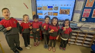November 2025 - We have had a fun month. We have had two teachers in our classroom (Ms Delaney and Ms Bolger – student teacher). We were learning all about The Little Red Hen. We planted cress seeds, tasted some bread and did role play based on the story. Ms Bolger has been teaching us all about Homes and Houses. We read the Three Little pigs and have especially enjoyed doing some building during play time. We are so excited for the nativity play. We have been practicing our songs and are looking forward to perform for you all.
